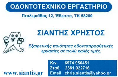 Το εργαστήριό μου είναι εξοπλισμένο με μηχανήματα τελευταίας τεχνολογίας,που μου επιτρέπουν να κατασκευάζω όλες τις προσθετικέςεργασίες από τις πιο απλές ως τις πιο σύνθετες.